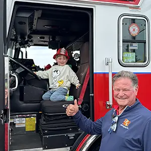 Local firehouses and police departments bring trucks and other cool vehicles to our parking lot. Our customers and their families are loving it! Thanks to my nephew Jake for launching this idea.